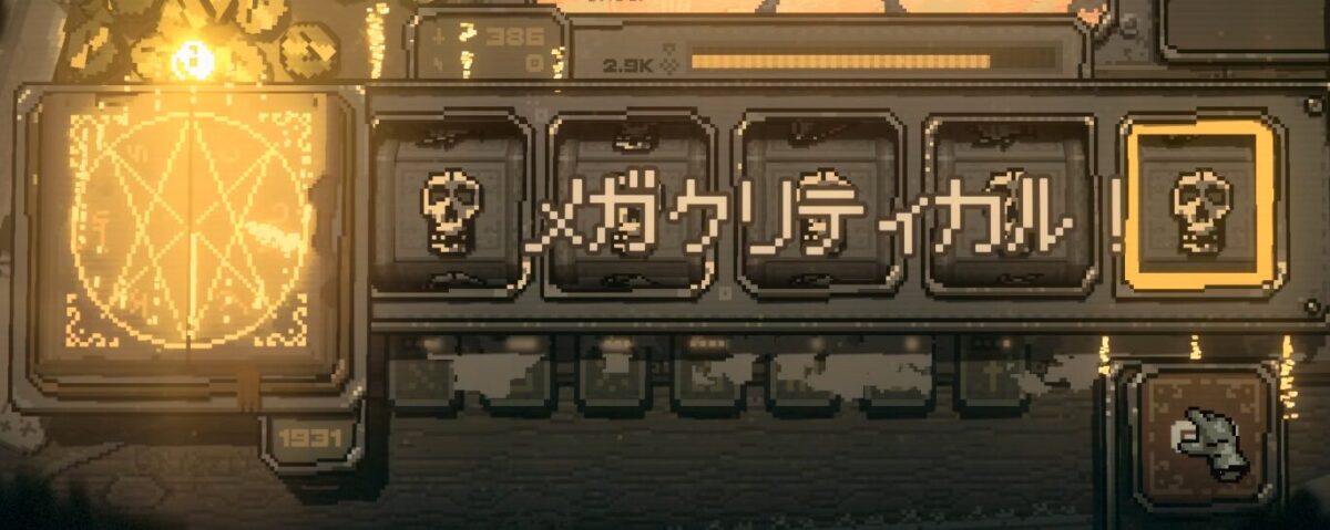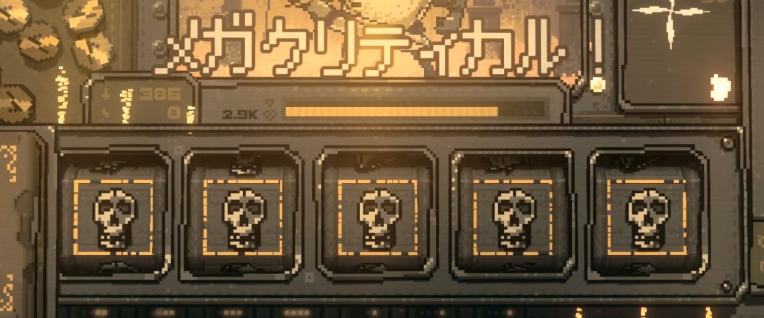 まずは2個目のリールまで適当にGOを押して進めます。↑の画像では3つ目のリールはダイヤモンドになっていますが、ダイヤモンドやスピンブレードは再ロールして最終的に死の呪いで止まります。つまり、100%死の呪いがゾロ目になってクリティカル発生になります。