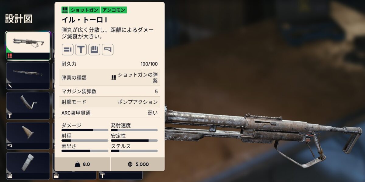 イル・トーロはショットガンなのでガンスミスのワークベンチの中にクラフトメニューの一品として追加されます。