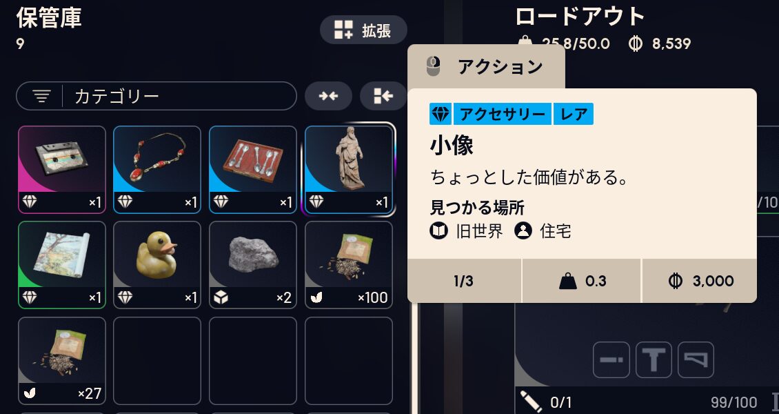 インベントリに枠があるならついでに持ち帰ろうかというレベル感かもしれないですね。低レアの換金アイテムは持てなくてもがっかりしなくてもいいと思います。