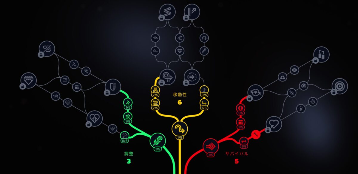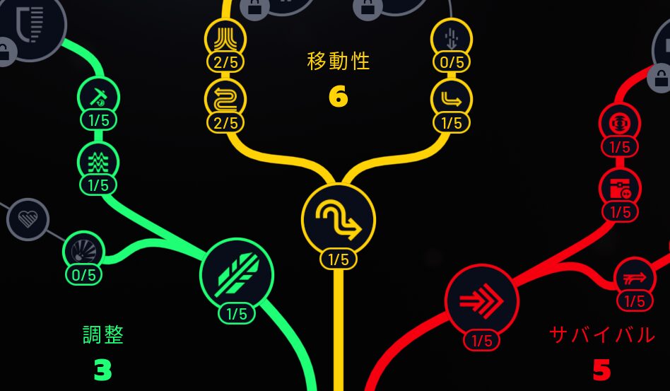 | 黄:移動性 | 探索快適に関連するスキル |