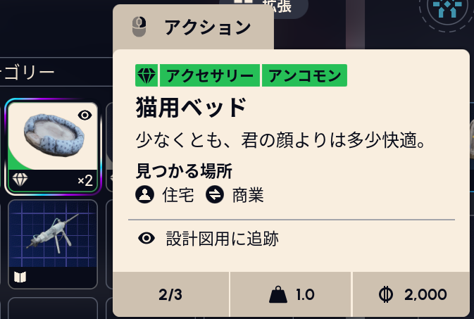 猫用ベッドは換金アイテムなので普通にクレートから出現します。