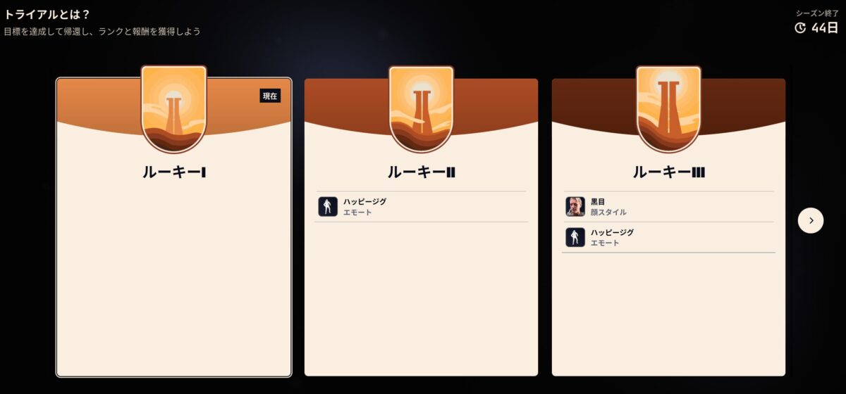 ランクはシーズン制になっており、今日時点で残り44日です。