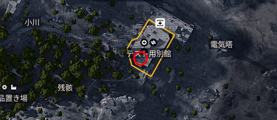 「ダムのテスティング・アネックスの鍵」で侵入可能な部屋はダム戦場のテスト用別館の1Fにあります。