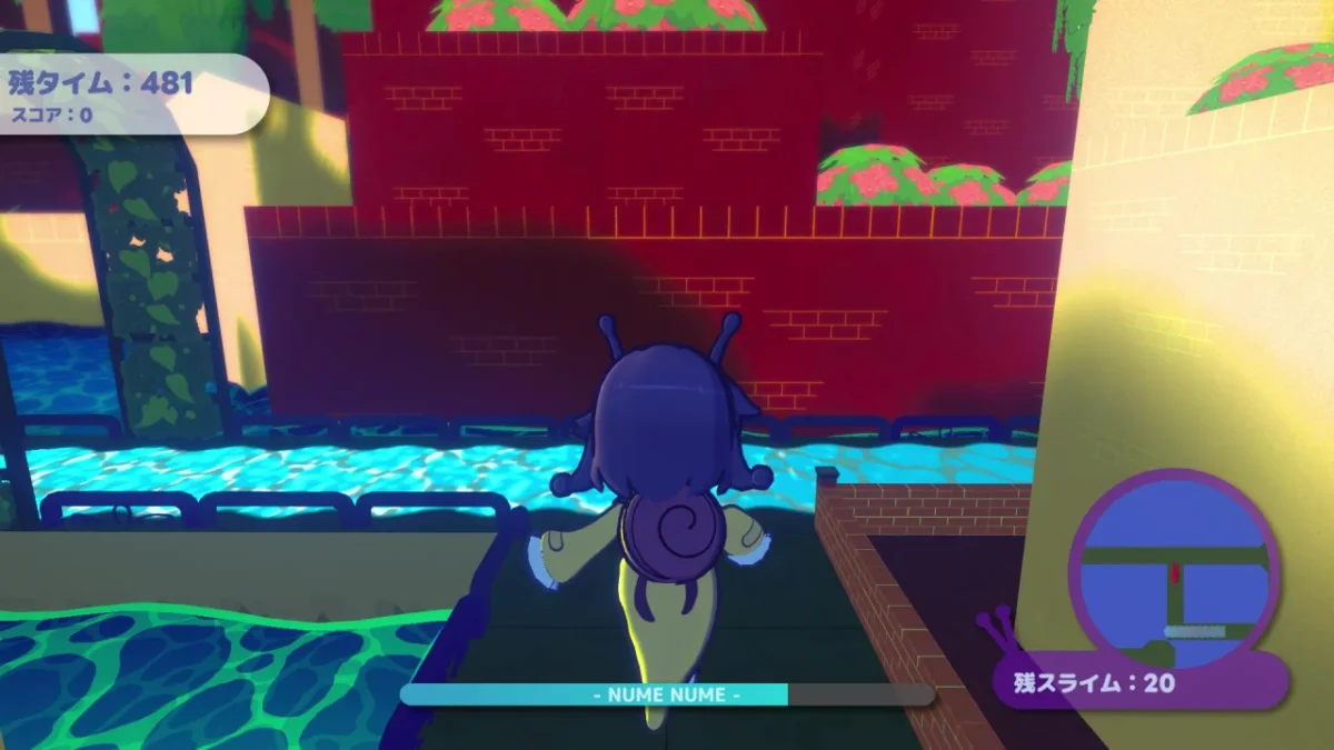 庭園迷路を舞台に、ナメツムリの少女「メイナ」がエネミーから逃げながらスライムを捕まえるアクションゲームです。