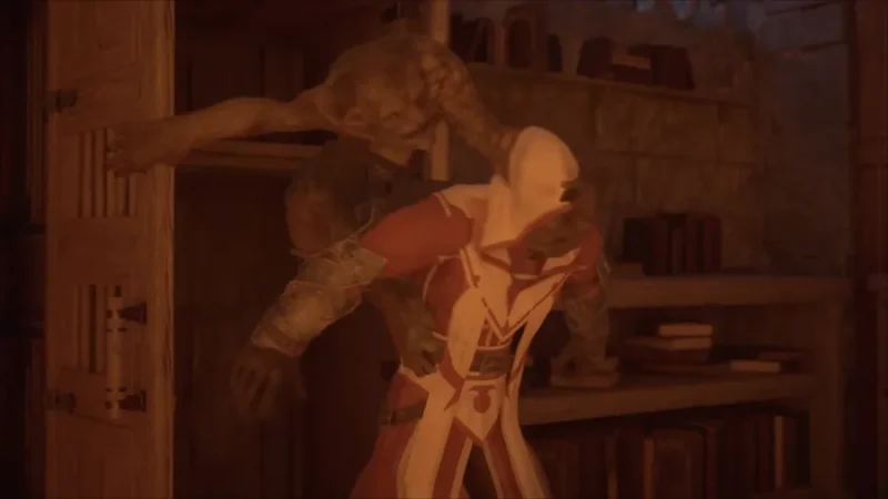 だからこそ、敵の巡回ルートをじっくり観察して、通気口や屋根裏、いわば「中世における換気ダクト」をくぐり抜けて進む隠密行動が最高に楽しいんです。L3ボタンのクイックセーブが推奨されていて、「部屋に入る。セーブ。机の下に隠れる。セーブ。護衛が視線を外すのを待つ。セーブ」というリズムでトライ&エラーを繰り返すのが基本サイクル。失敗しても高所に逃げたりクローンで陽動したりと立て直しが効くので、理不尽さはそこまで感じません。