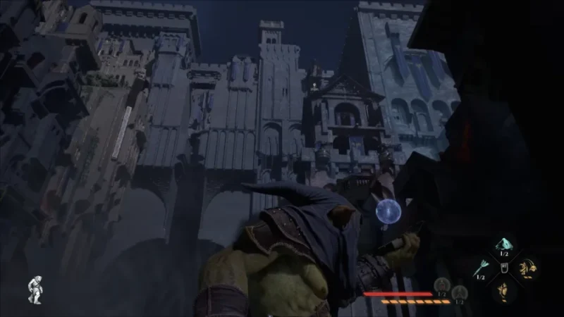 グラップリングフックやグライダーを手に入れると行動範囲が一気に広がって、以前は通れなかった場所にアクセスできるようになるメトロイドヴァニア的な探索の喜びがあります。決まったルートが存在しないので、屋根の上から攻めるのか、地下通路を使うのか、同じ目的地でもまったく違うアプローチが可能です。