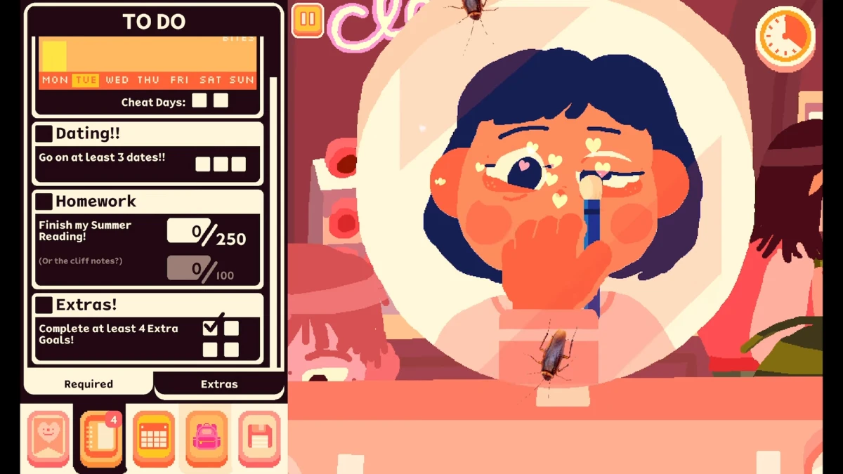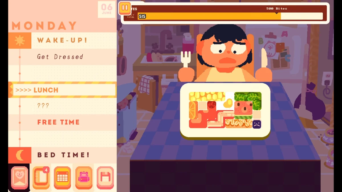 - 日常の行動は、楽しくて手早く遊べるミニゲームで表現されています。食事のパズルや読書の集中力維持など、これらのミニゲームを毎日繰り返すことで、主人公が人生で奮闘する様子に自然と共感できるようになっています。