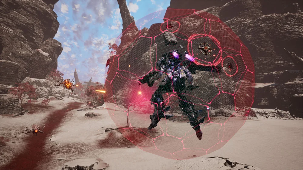 - 広大な世界には強力なフィールドボスや隠されたアイテムが点在し、プレイヤーの探索意欲をかき立てます。敵を倒したりコンテナを開けたりして装備を集めることが、機体強化に不可欠です。