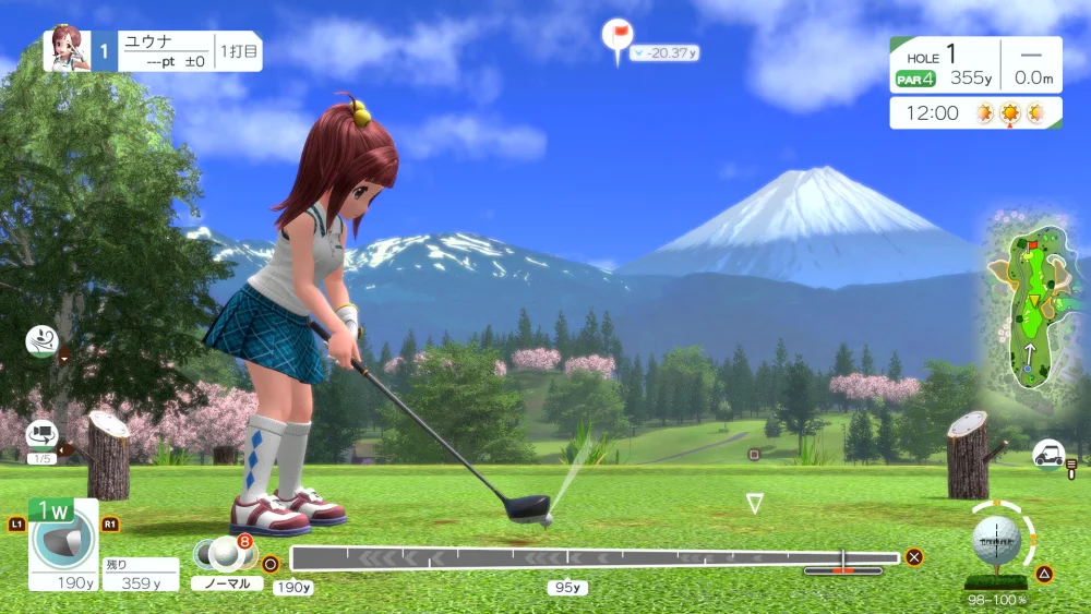 シリーズの代名詞であるシンプルな3回ボタン入力(3クリック方式)によるショットシステムが健在で、誰でもすぐにボールを打てるようになっている点が評価されています。このシステムは簡単ながらも奥深く、風向き、コースの傾斜、ボールにスピン(トップスピン、バックスピン、サイドスピン)をかける技術を習得することで、より戦略的なプレイが可能です。この核となるゲームプレイはスムーズで反応が良く、完璧なショットが決まった際の爽快感は格別です。