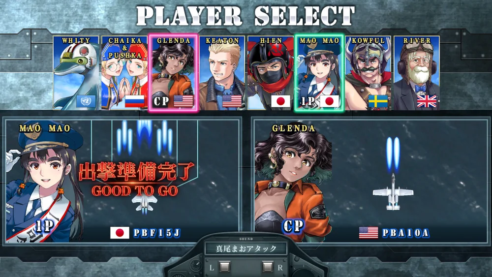 最も評価されているのは、個性的なパイロットと僚機システムがもたらすストーリーの多様性です。初期8名に加えて秘密のキャラクターもおり、それぞれが独自の射撃パターンやスタイルを持っています。また、僚機(パートナー)を選び、その僚機の爆弾(武器)を借りるシステムも特徴です。誰を僚機に選んだかはエンディングに影響し、一人でクリアした場合や僚機との組み合わせによって、劇的な結末から奇妙で面白い結末まで、ユニークなやり取りを含む様々な結末が用意されています。