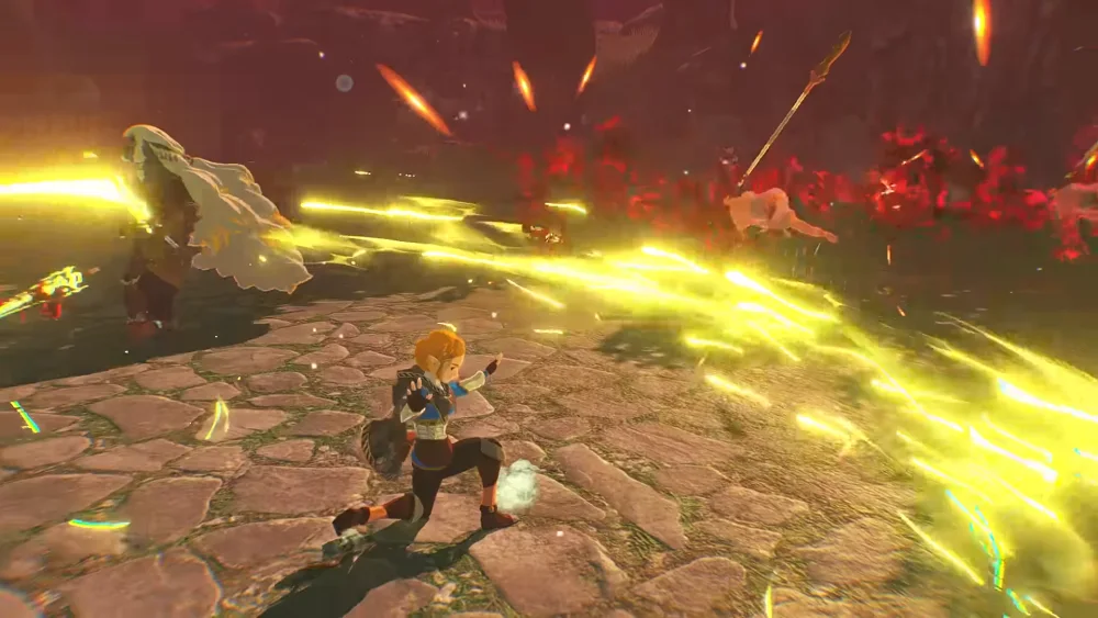 プレイヤーは初代ハイラル国王ラウルやゼルダ姫、賢者たちを操作し、一騎当千の爽快バトルを繰り広げます。本作では、ゾナウ族の技術「ゾナウギア」をスキルとして駆使したり、仲間と連携して放つ大技「シンクストライク」といった新システムを搭載。