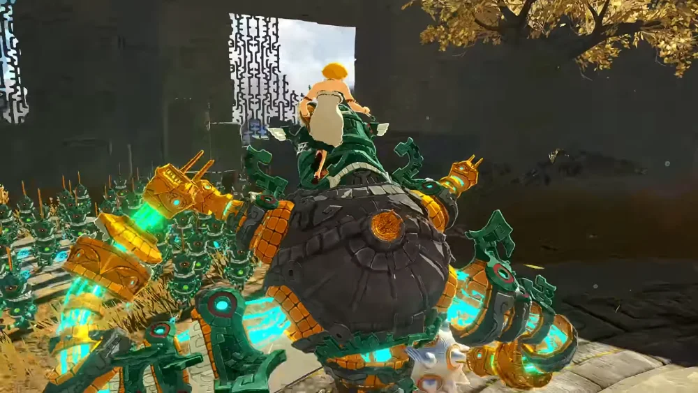• 同行する仲間と放つ協力必殺技。ゼルダとミネルがゴーレムに乗るなど、キャラクターの組み合わせによってユニークな技が発動します。